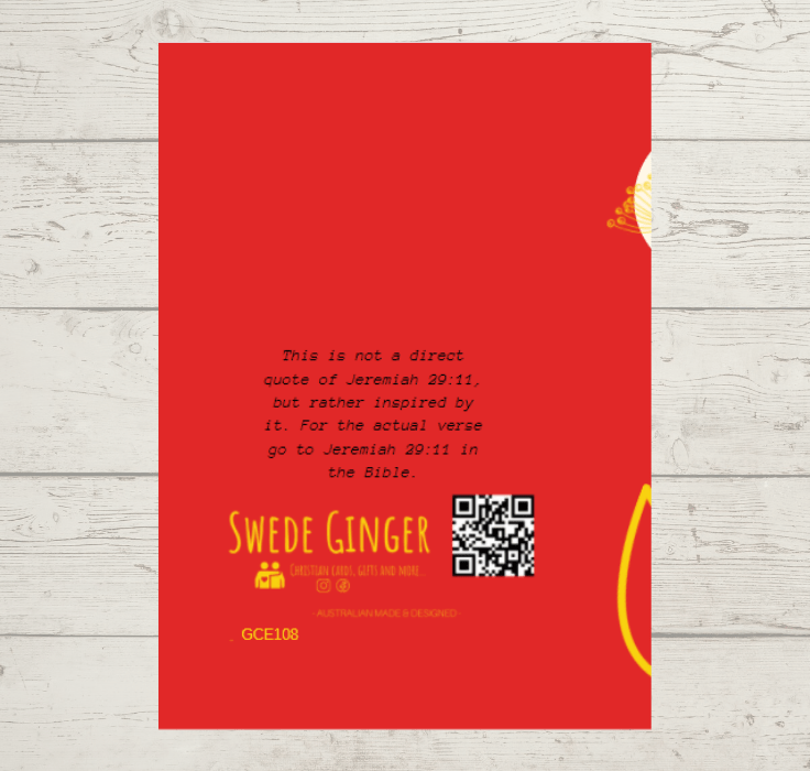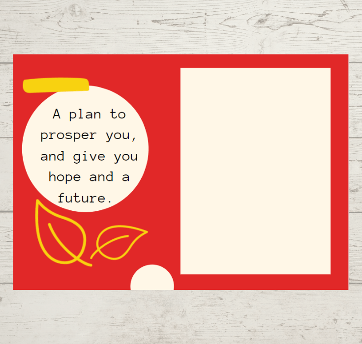 “God has a plan and it is really good.” Inspired by Jeremiah 29:11. Inside of card says, “A plan to prosper you and give hope and a future.”